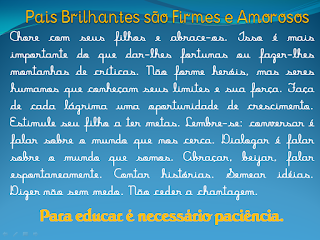 É com muita satisfação que participo das reuniõs do integral.Parabéns pelo projeto que está sendo realizado.Meu filho está gostando muito..A apresentaçao do dia das mães foi linda.Parabéns à coordenadora Sandra,à direção e aos professores por se empenharem neste projeto e pelo carinho e dedicação para com os alunos...